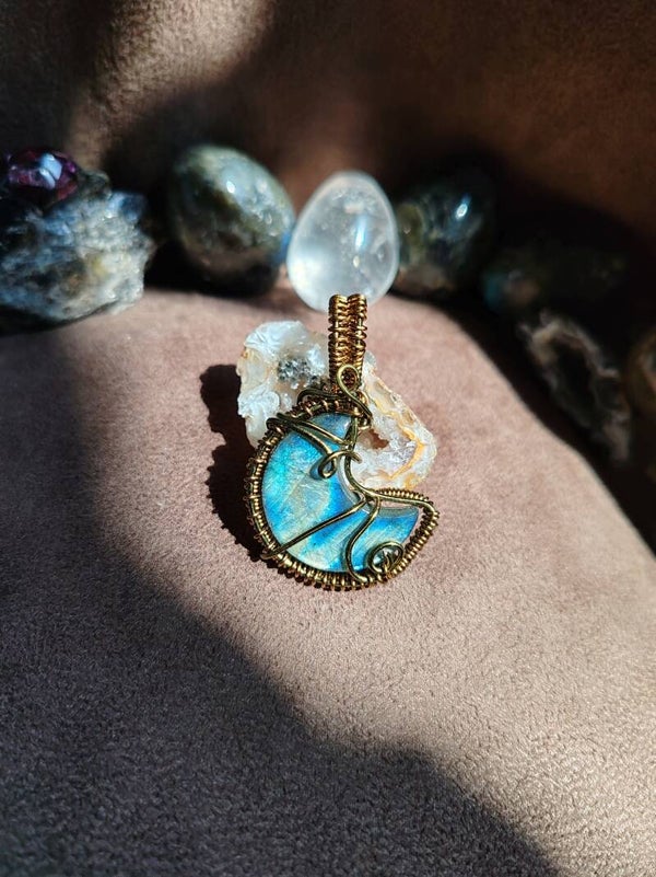 J'utilise du fil de cuivre, teinté ou non, traité antioxydant ou non, de laiton et d'aluminium. Avec le temps, ces matériaux s'oxydent, et patinent le bijoux. Certains aiment et d'autres pas, il est possible de les nettoyer avec de la laine d'acier 0000 et de l'eau savonneuse, afin de leur rendre leur brillance d'origine. Pour limiter l'oxydation, je vous recommande de ne pas prendre de douche avec votre bijoux, d'éviter de le mouiller.  Pour certaines pierres, les variations de températures sont déconseillées et risqueraient de les endommager à long terme.