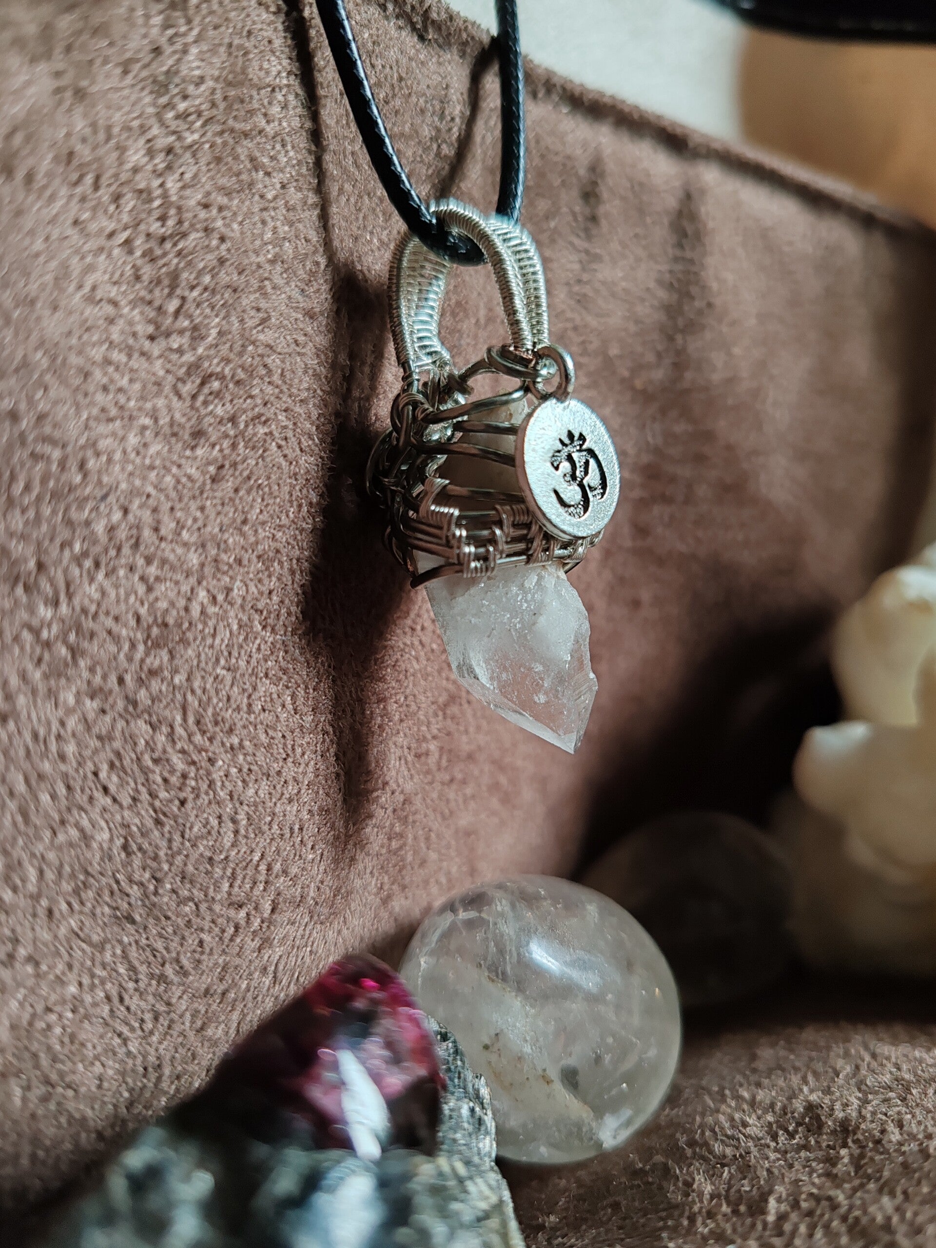 J'utilise du fil de cuivre, teinté ou non, traité antioxydant ou non, de laiton et d'aluminium. Avec le temps, ces matériaux s'oxydent, et patinent le bijoux. Certains aiment et d'autres pas, il est possible de les nettoyer avec de la laine d'acier 0000 et de l'eau savonneuse, afin de leur rendre leur brillance d'origine. Pour limiter l'oxydation, je vous recommande de ne pas prendre de douche avec votre bijoux, d'éviter de le mouiller. Pour certaines pierres, les variations de températures sont déconseillées et risqueraient de les endommager à long terme.