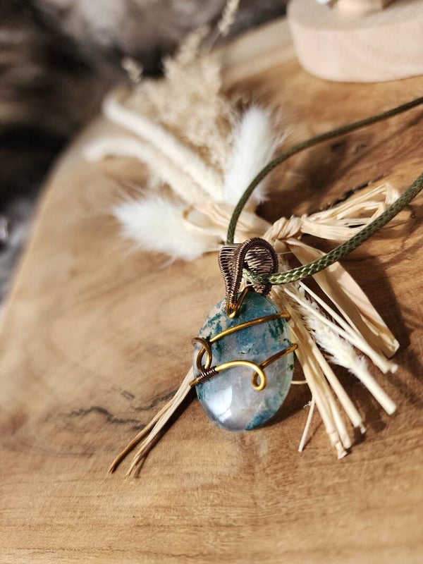 Ce mini pendentif minimaliste a été tissé à la main en fil de cuivre antique. Juste ce qu’il faut de matière pour sublimer la pierre, sans l’encombrer. Chaque détail est pensé pour rester fluide, sobre et organique.