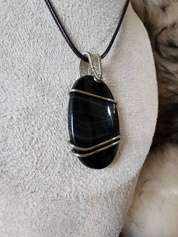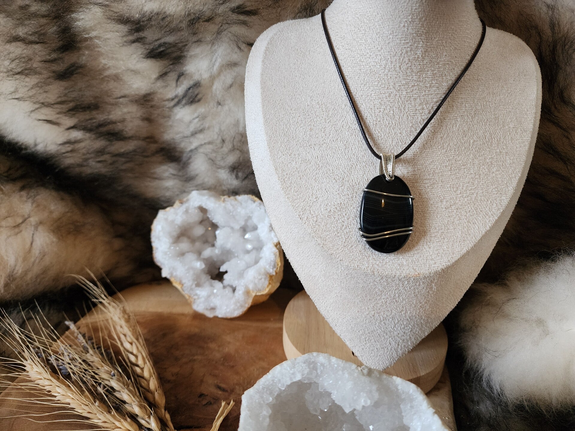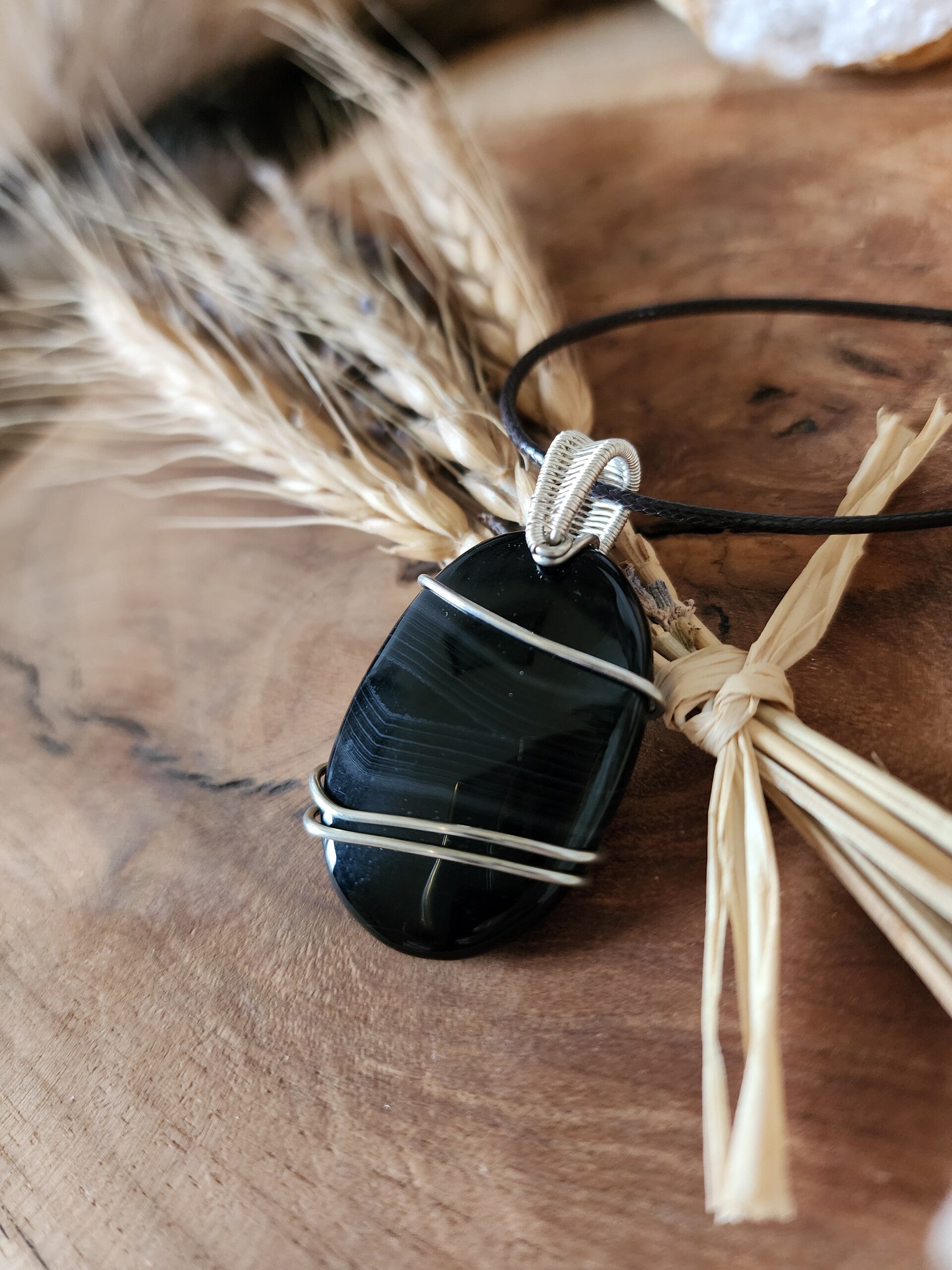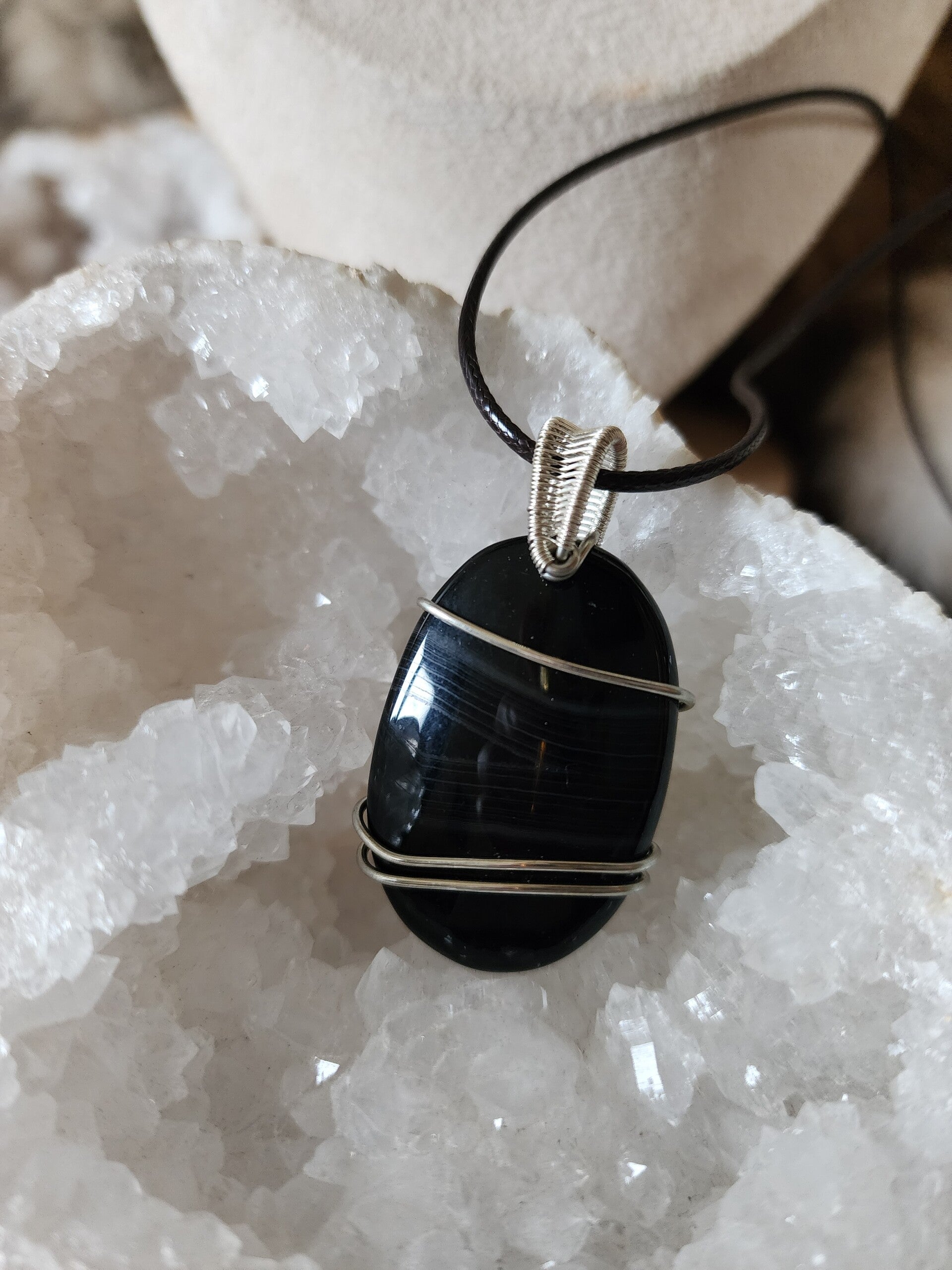 ✨ Pendentif Veines de Nuit en Onyx Rubané✨